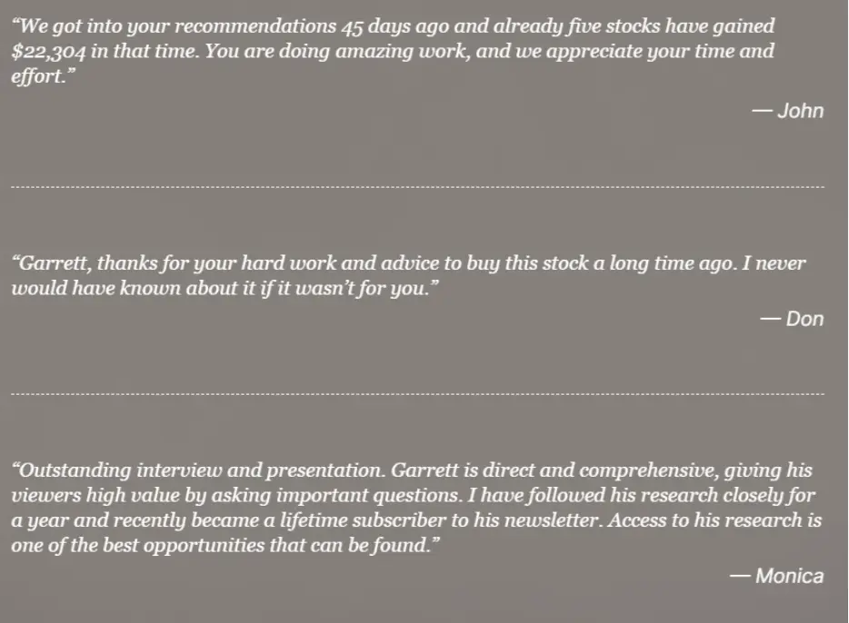 The membership also includes the additional materials discussed earlier, such as Goggin’s extra stock recommendation and the special reports covering gold strategy and blockchain developments.